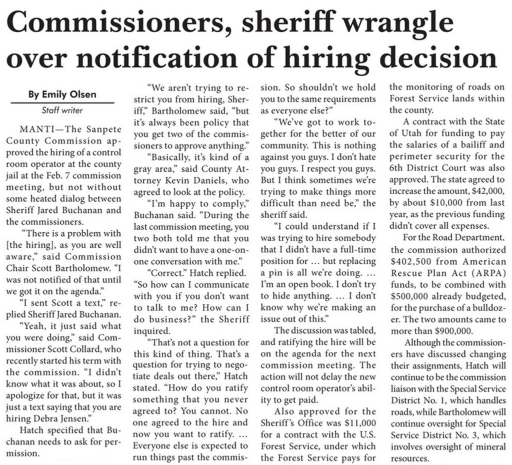 By Emily Olsen / The Sanpete Messenger, February 15, 2022