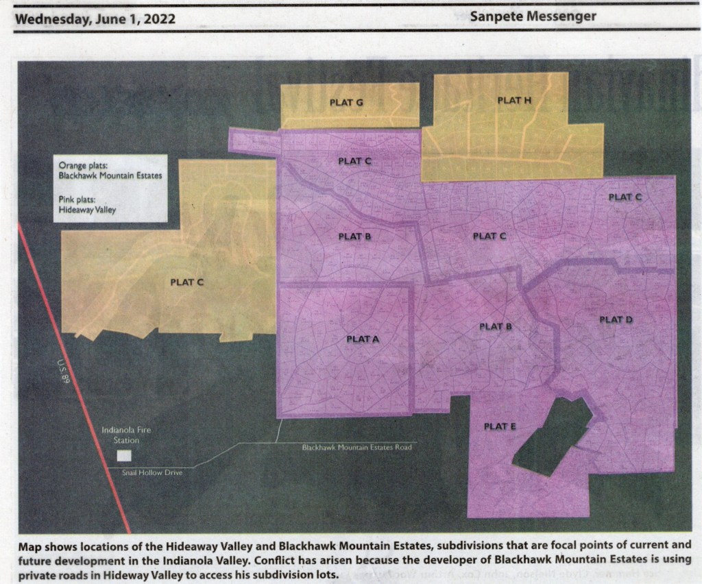 When Fred Smith passed away in 2018, his son Jamison Smith, who is also a developer, inherited Blackhawk Mountain Estates and began planning development of homes north and east of Hideaway Valley. But in doing so, he has been illegally using private roads in Hideaway Valley, despite Hideaway Valley residents telling him not to.